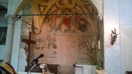 è chiamata anche Pieve di Gussago o Chiesa dei Morti, soprattutto dagli abitanti del paese. Si trova in località Piè del Dosso, sotto il Comune di Gussago. Viene considerata una cripta, perché si dice che vi furono sepolti i deceduti a causa della peste manzoniana. Per chi ama il simbolismo questa è una chiesa particolarmente interessante perché, al suo interno, è tutto un ricorrere di simboli che collegano il passaggio tra paganesimo e cristianesimo. Ad esempio le rosette concentriche, che riportano al concetto del fluire della vita, dell’evoluzione e del cambiamento. Vi sono poi effigi che si rifanno al culto longobardo, come l’aquila col serpente tra gli artigli, il leone in atteggiamento sottomesso o il pavone con l’uva nel becco. Tutti animali adorati dai pagani che, nel tempo, hanno lasciato il posto a quelli biblici, come l’agnello che impersonifica Cristo Redentore.- Quindi ci si è spostati in quel di Rezzato per il consueto pranzo a "Villa Fenaroli"